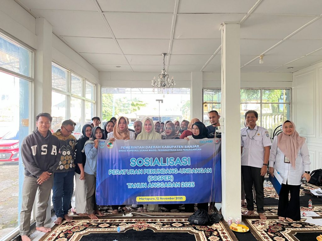 Martapura 17 November 2025 – Dalam upaya memperkuat peran koperasi sebagai penggerak ekonomi desa, Dinas Koperasi, Usaha Mikro, Perindustrian dan Perdagangan (DKUMPP) Kabupaten Banjar bersama Anggota DPRD Kabupaten Banjar menyelenggarakan Sosialisasi Perkoperasian (SOSPER) di Kediaman Ibu Hj. Rusmini Kelurahan Jawa, Kecamatan Martapura.